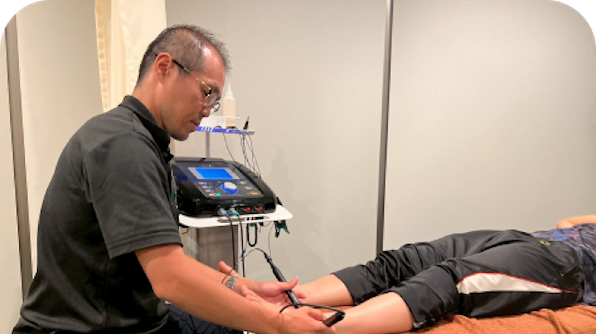 状態に応じて、競技現場でも使用される体外衝撃波や微弱電流などの物理機器も導入しています。